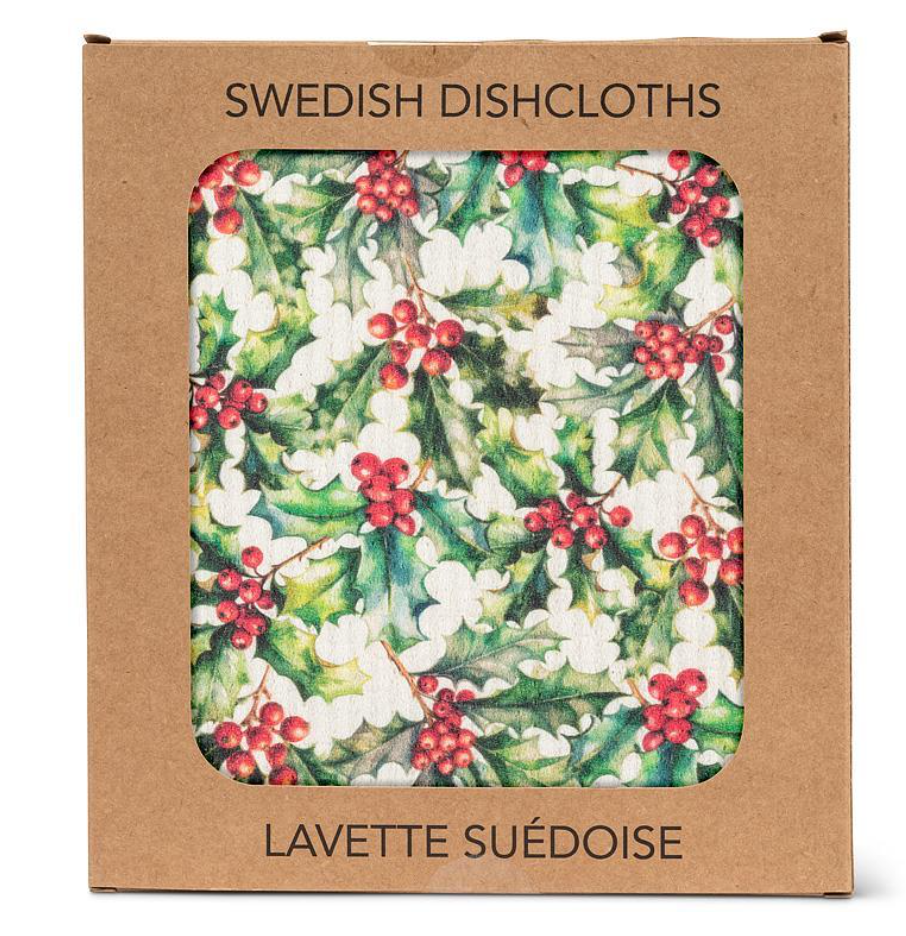 These biodegradable European-made and PRC-printed dishcloths are as durable as they are eco-friendly — featuring Holly & Berries design. Our digitally printed dishcloths will help with your washing and cleaning. Ultra-absorbent, each machine-washable cloth replaces up to 15 rolls of paper towel, and lasts for up to 12 months. Perfect for the home, office or cottage.