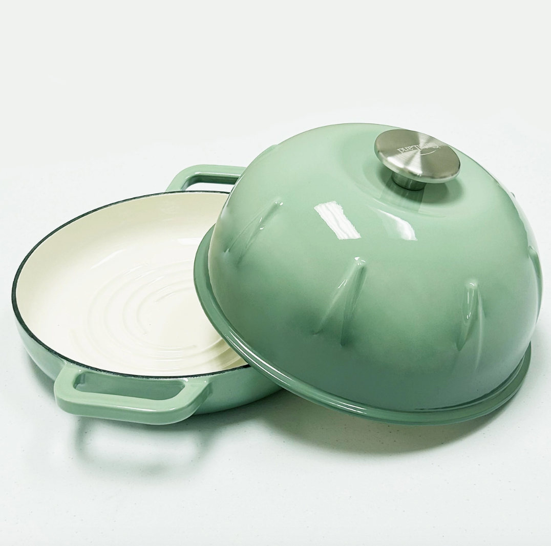 * PREMIUM QUALITY: Cuisiland Enameled (Green One) Cast Iron Bread Oven is made of heavy-duty cast iron material, which is sturdy and durable for long-time use. The interior is coated with a smooth and durable vitreous enamel layer, which not only protects the iron but also makes it easy to clean and resistant to rust, corrosion, and high temperatures.